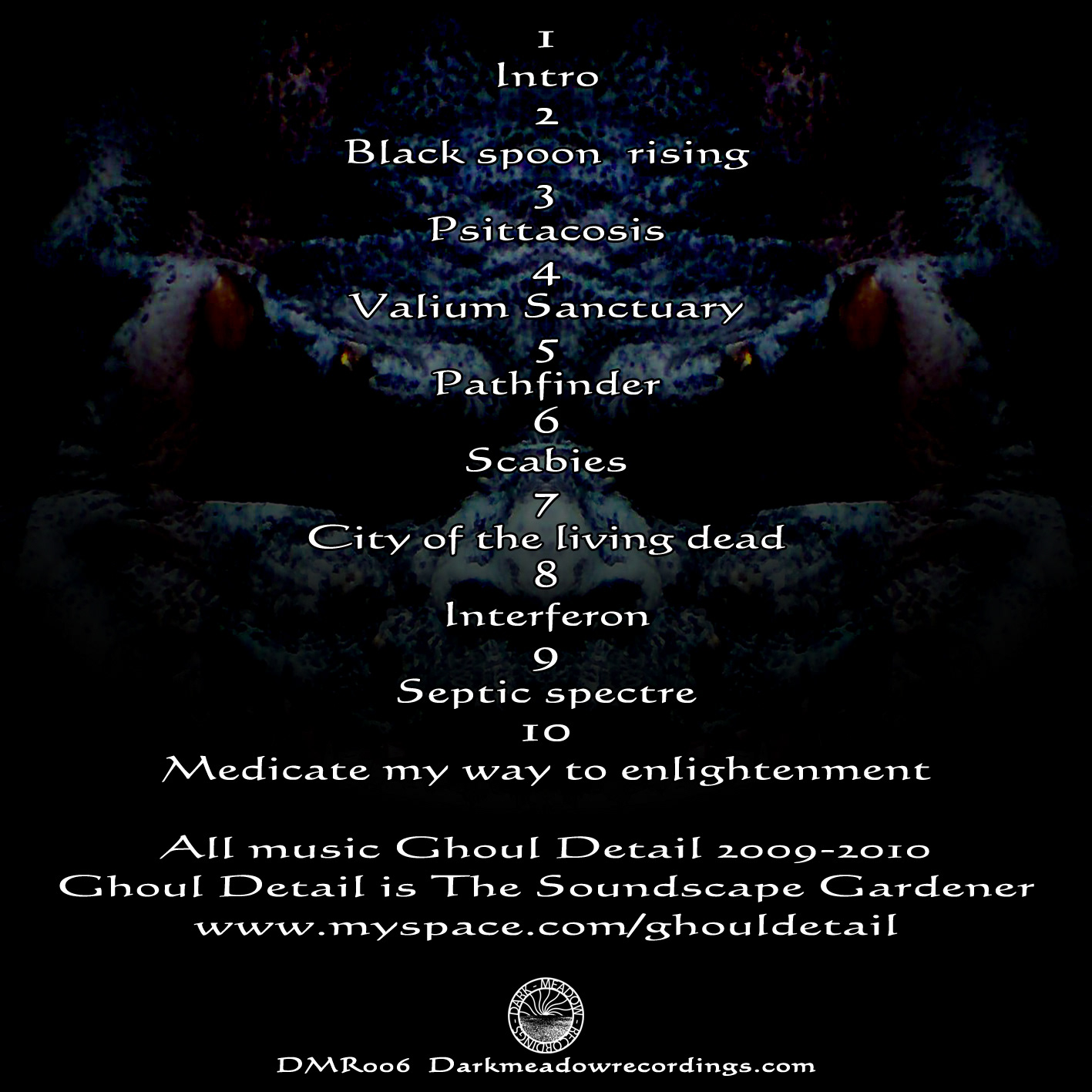 Between 2010 - 2012 I was commissioned be Darkmeadow recordings to produce CD covers for some of its artists releases and to do general artworking duties. The label ceased operation in 2012.