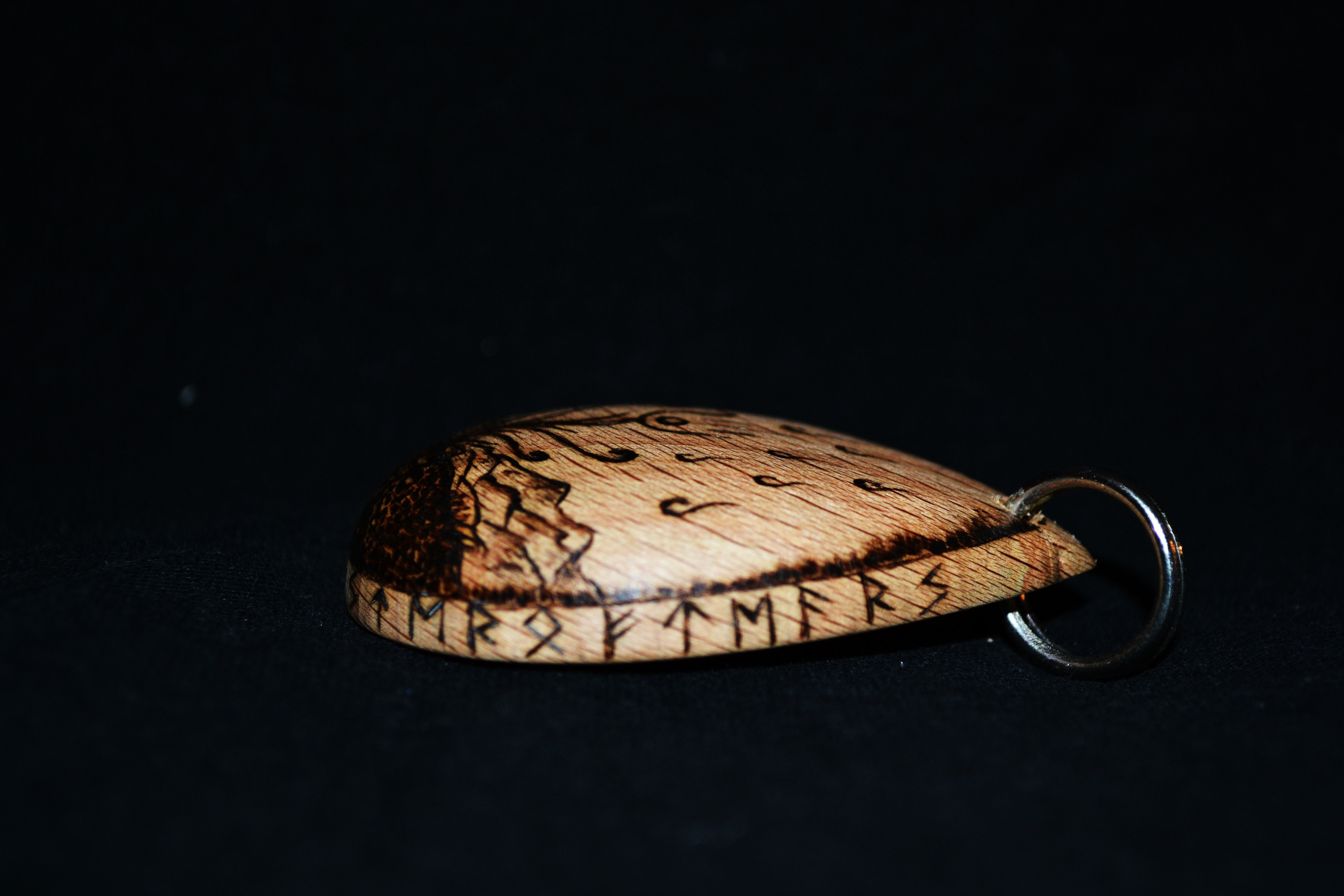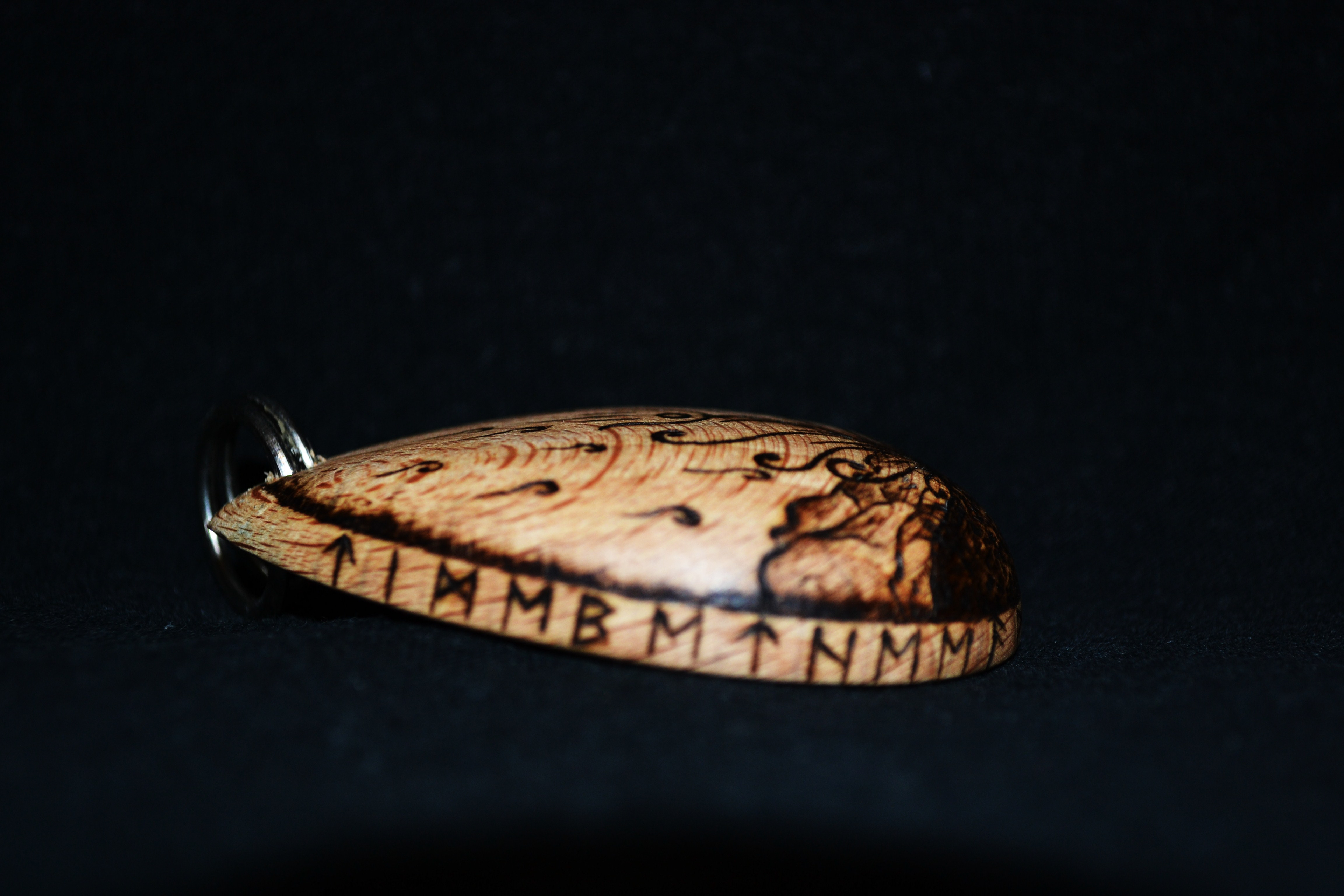 Wooden pendant with pyrography decoration.