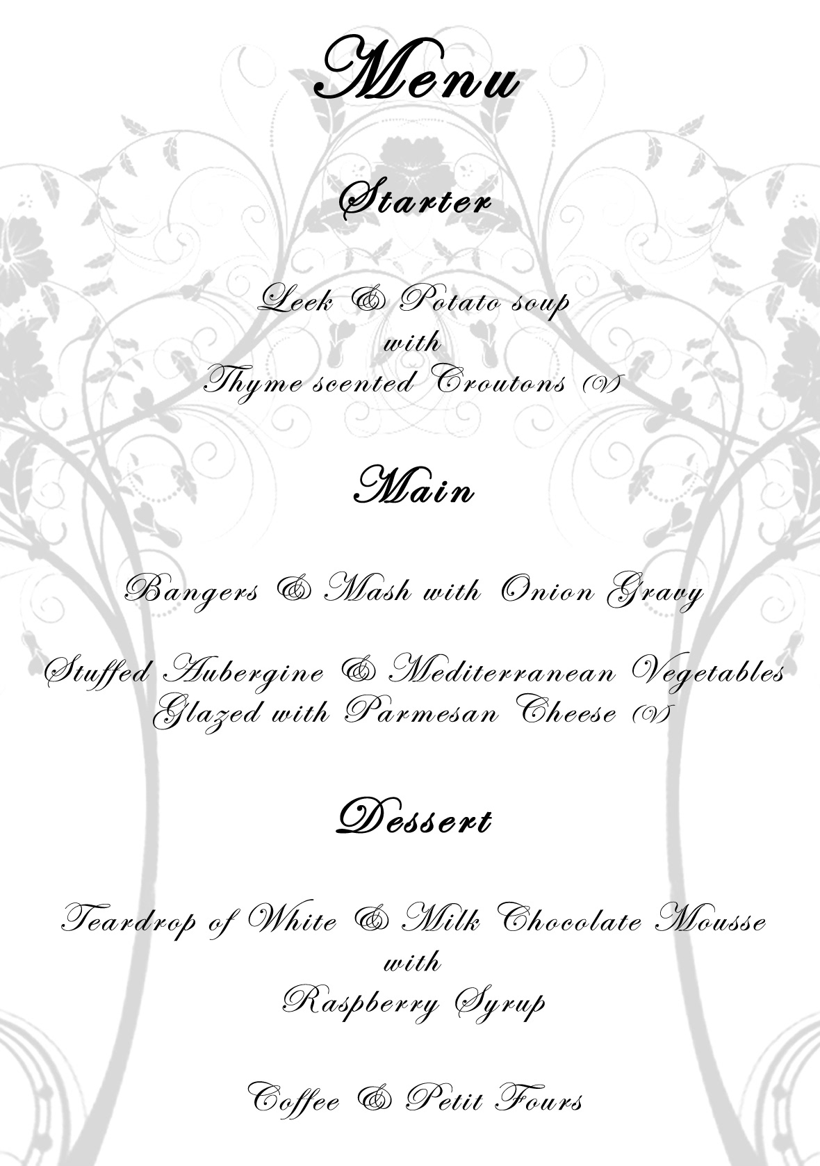 to produce a wedding invitation, menu and table number design.