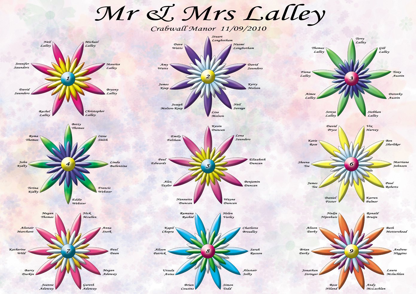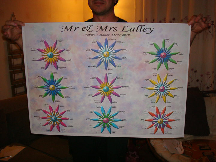 Designed around the theme of flowers this seating plan also used decoupage techniques in its creation.